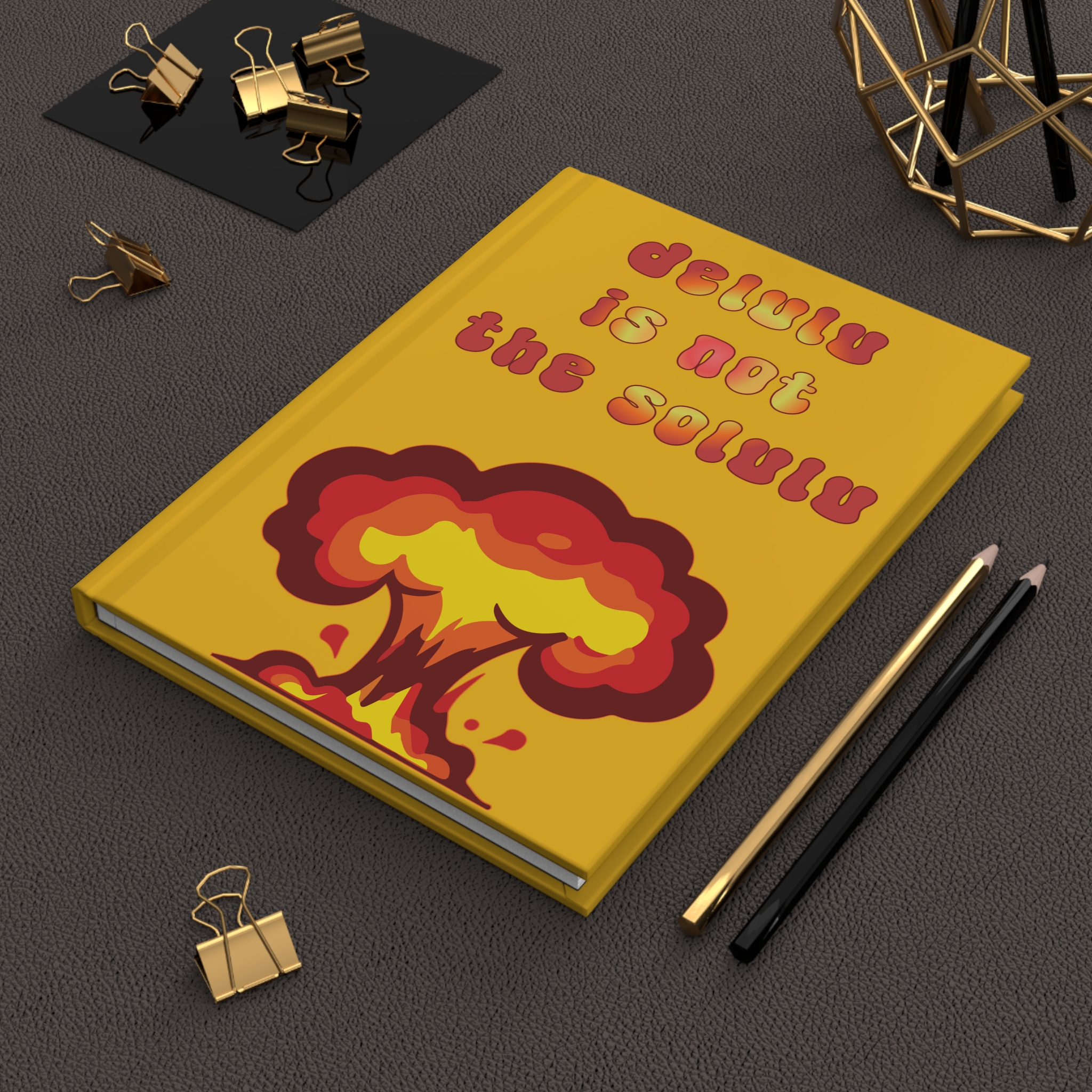 Delulu is not the solulu. Peace and kindness are. This hardcover writing journal features a bold fire-colored explosion design paired with the phrase “delulu is not the solulu”—a powerful reminder that blowing things up (emotionally or otherwise) is not the answer. True solutions come from reflection, calm, compassion, and thoughtful action. Designed for journaling, note-taking, self-reflection, or creative writing, this notebook turns a viral phrase into a meaningful message about choosing peace over chaos and kindness over destruction.