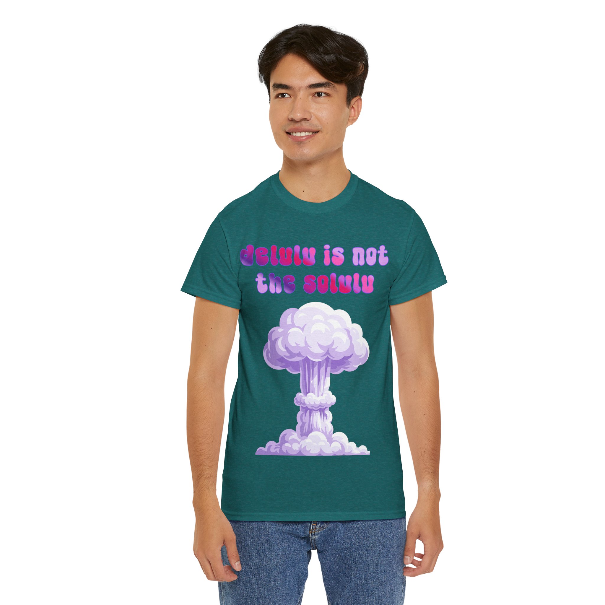 Delulu Is Not the Solulu T-Shirt, Purple Explosion Graphic Tee, Kindness Over Chaos Shirt, Peace Not Destruction, Positive Message Tee