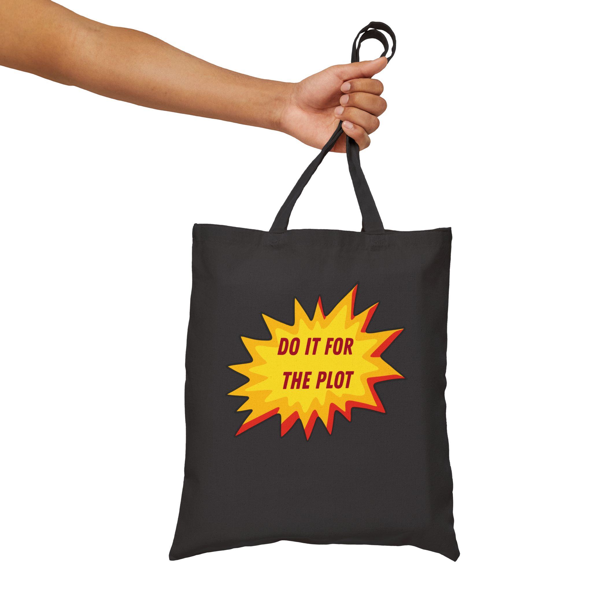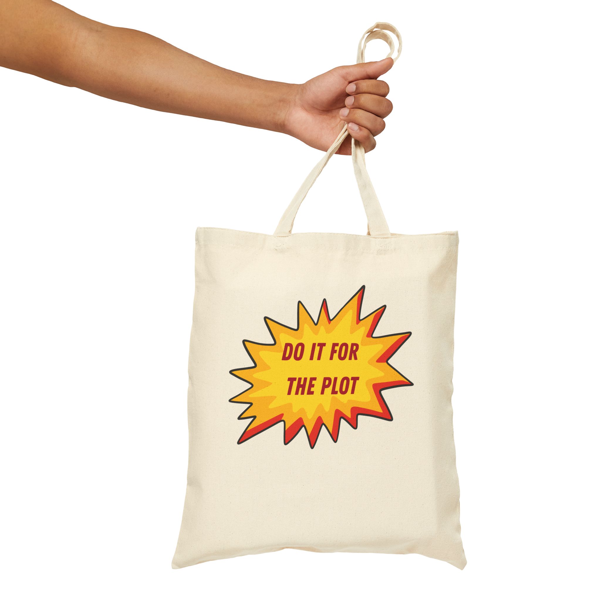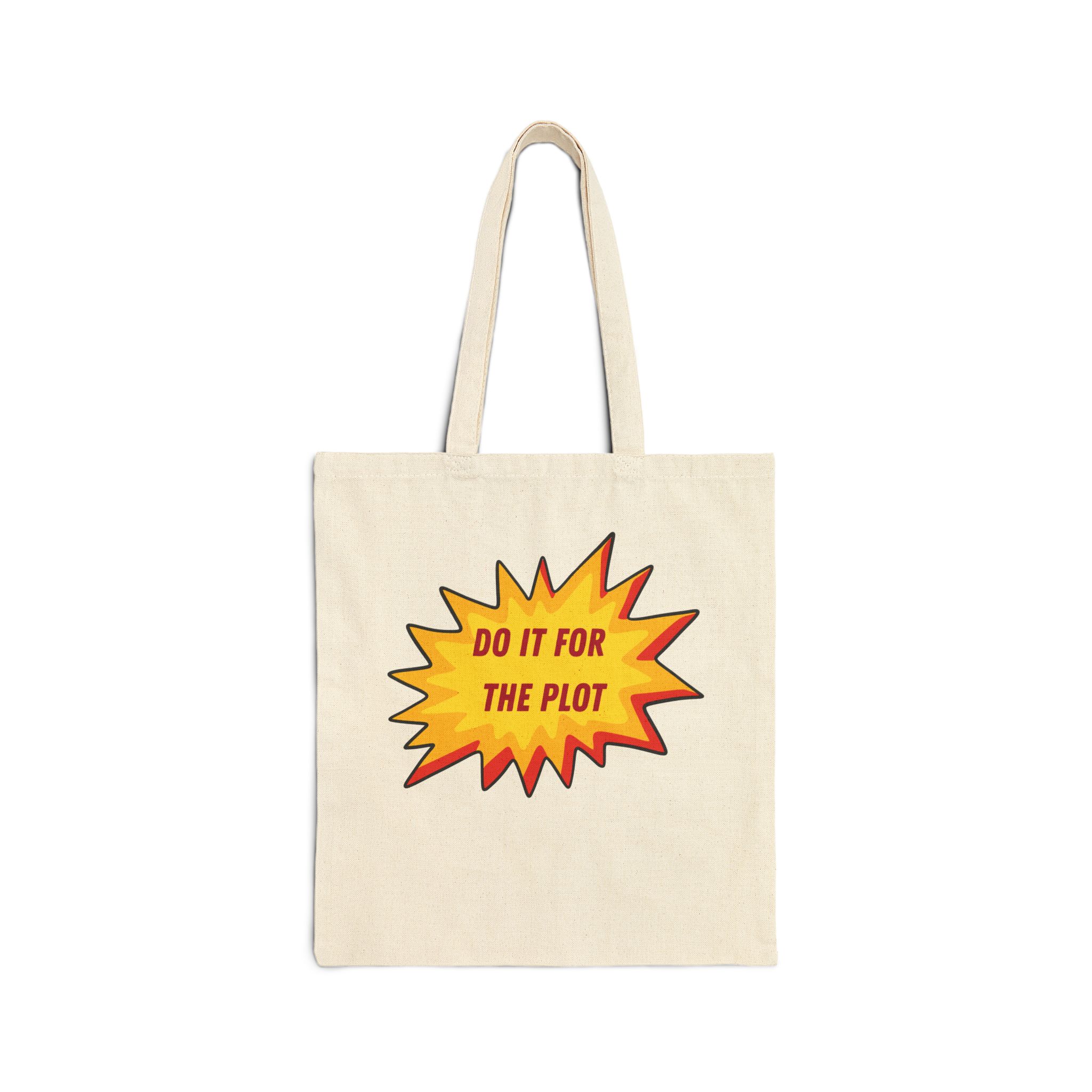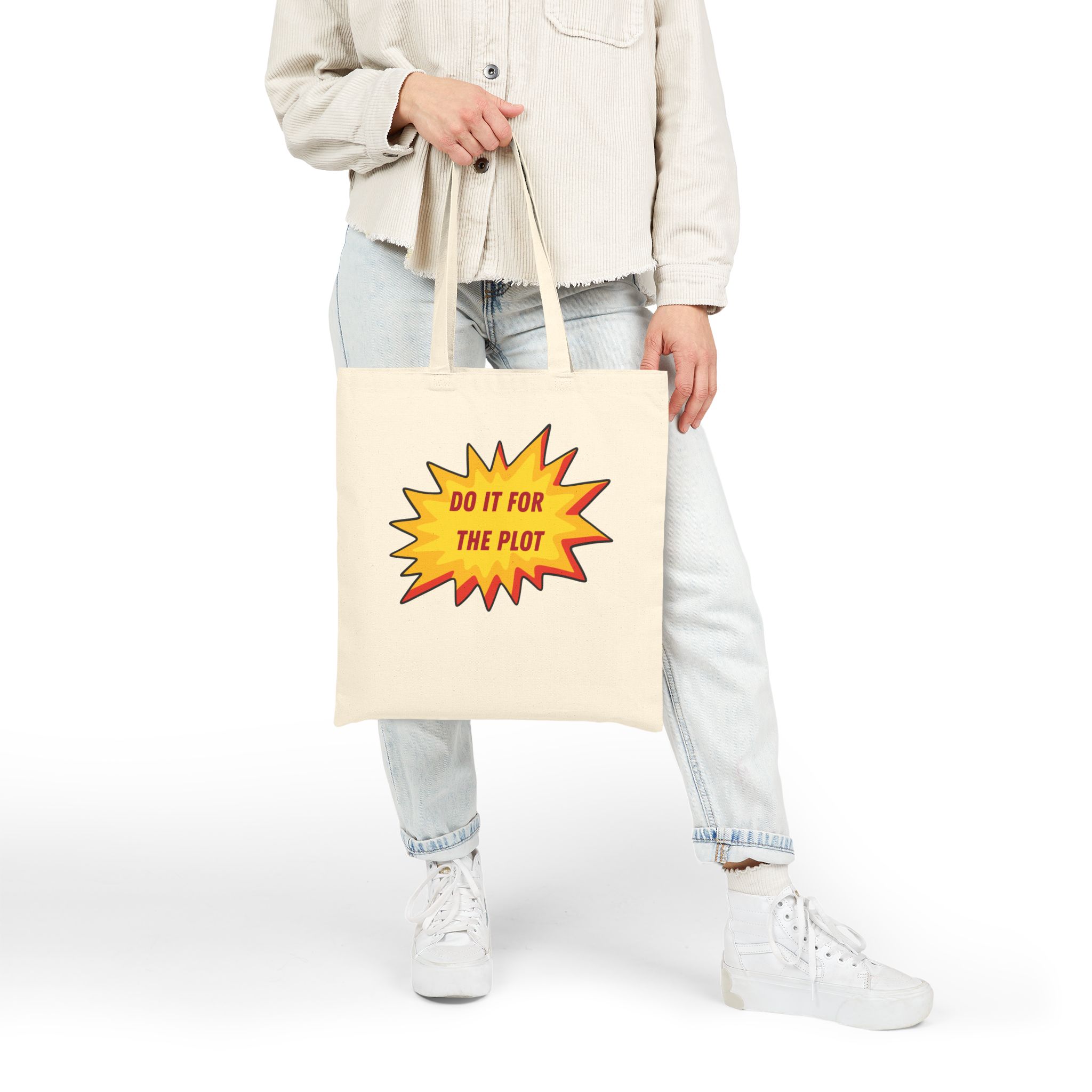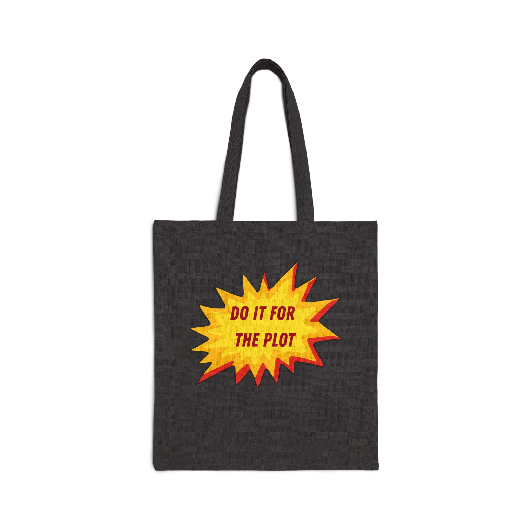 This Do It For the Plot cotton canvas tote makes encourages the owner to make bold, spontaneous and unusual choices and make life more interesting and adventurous.