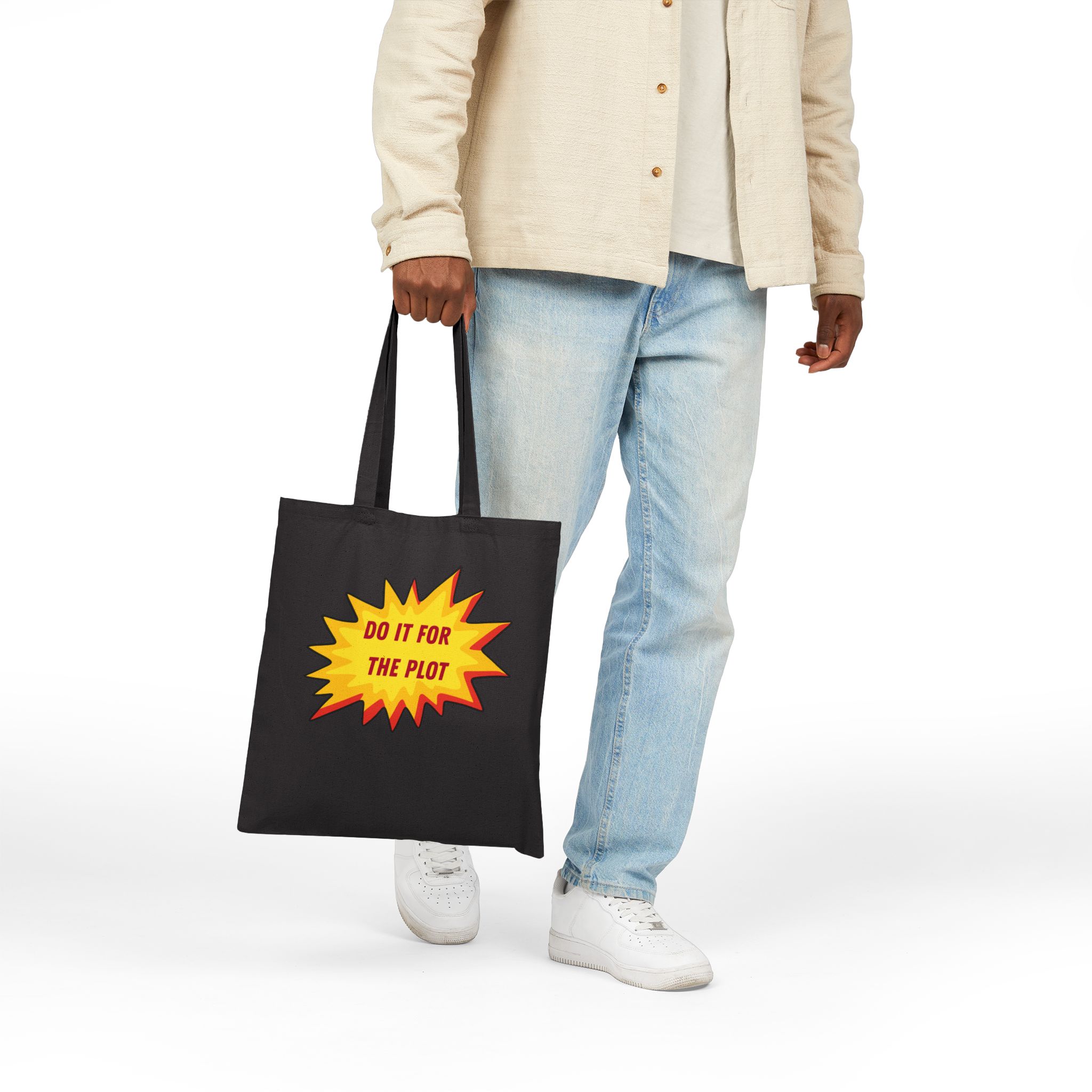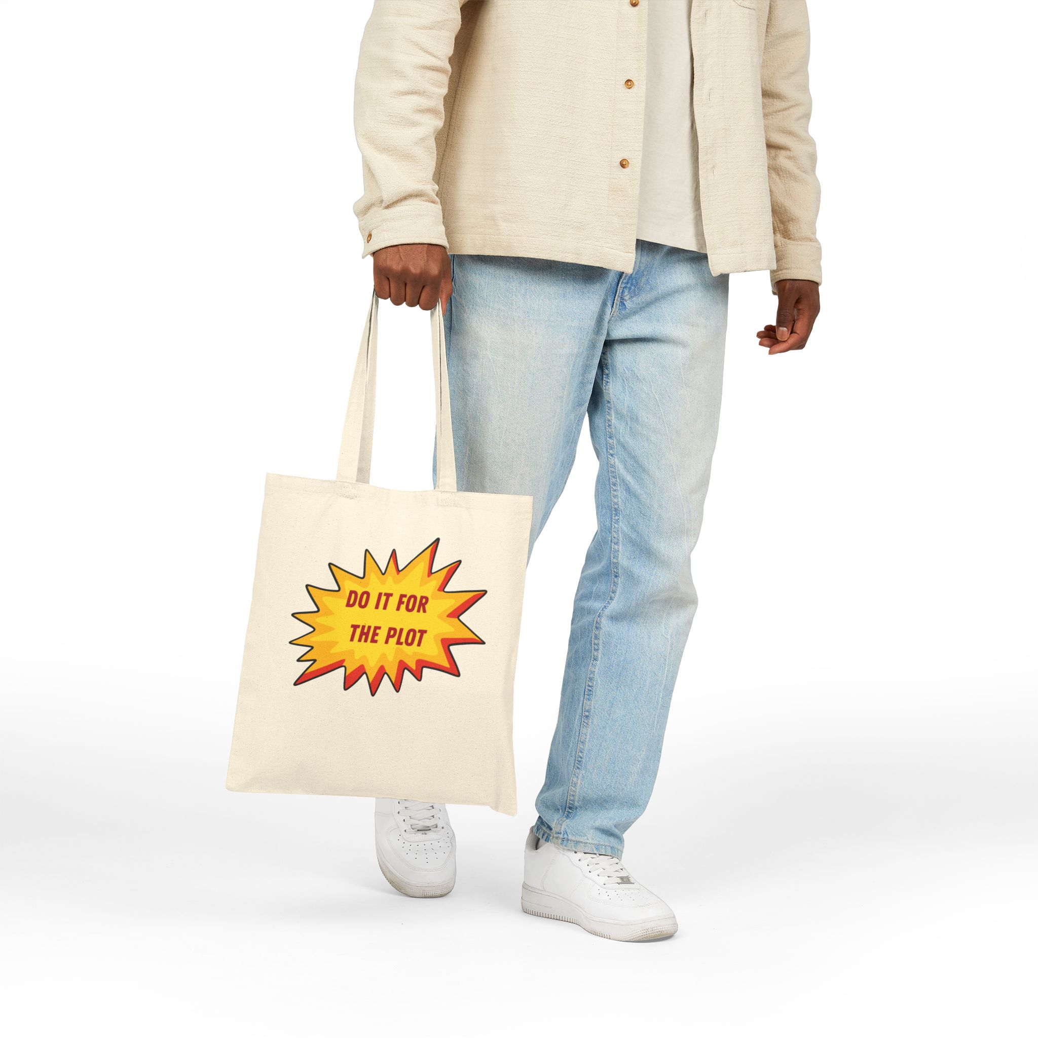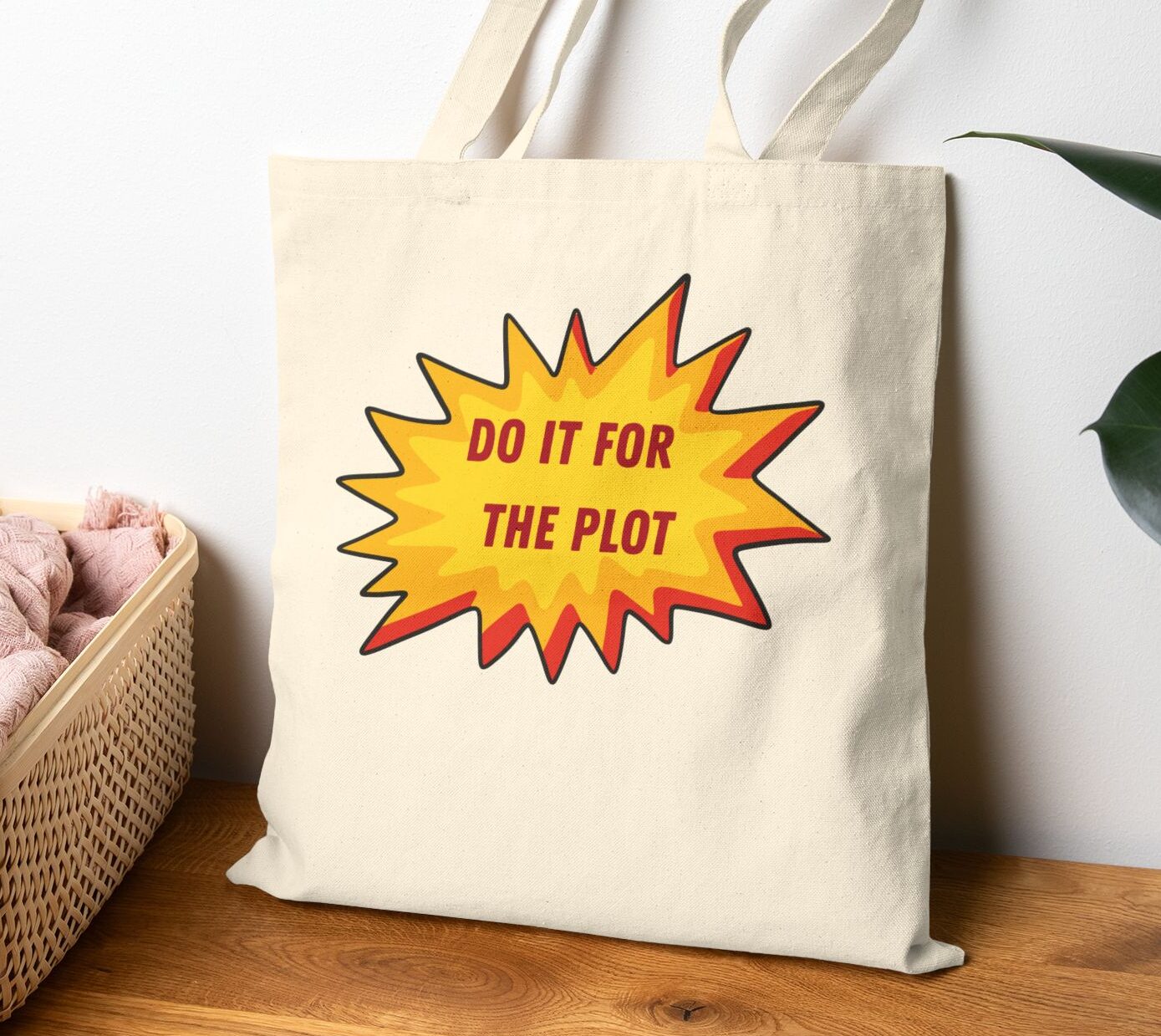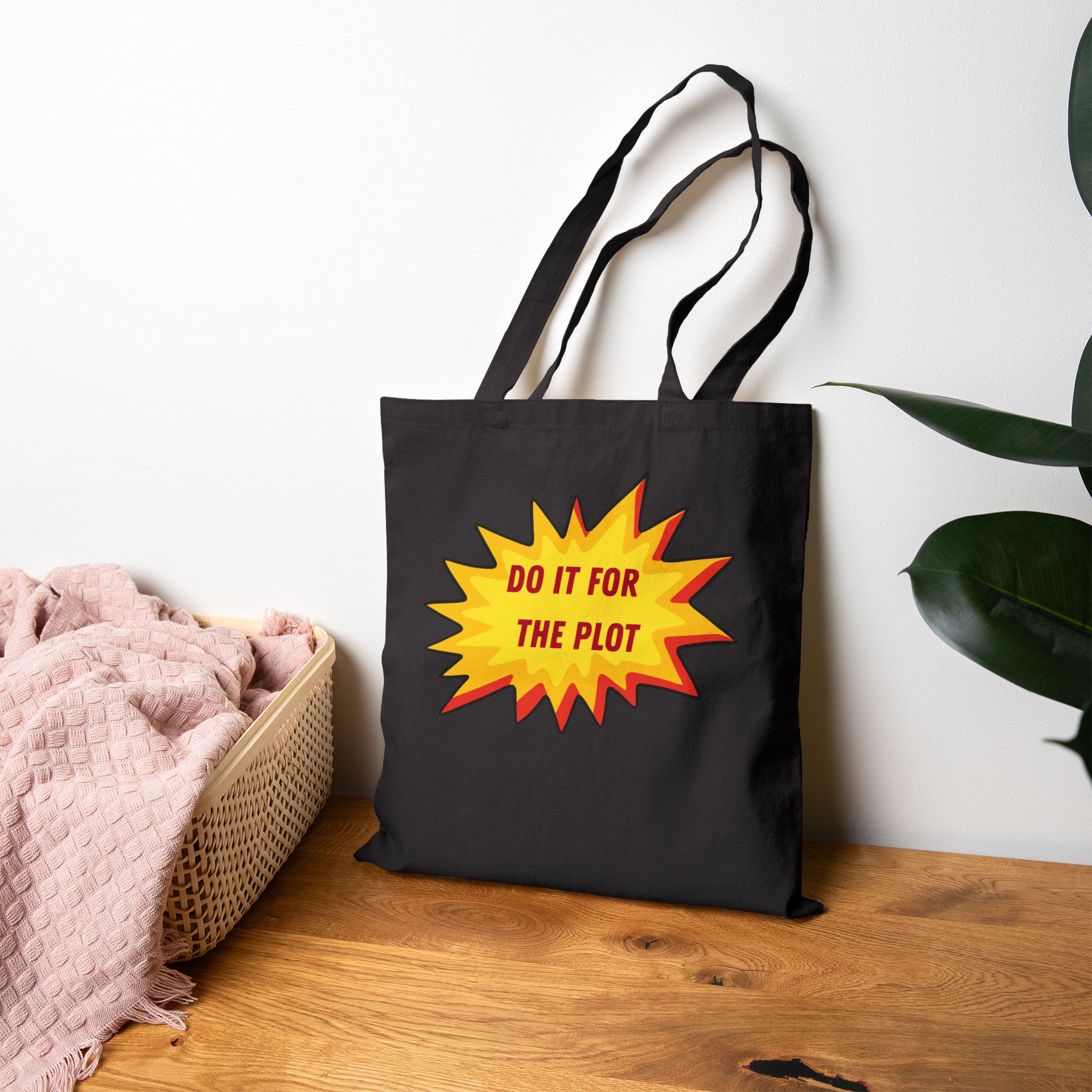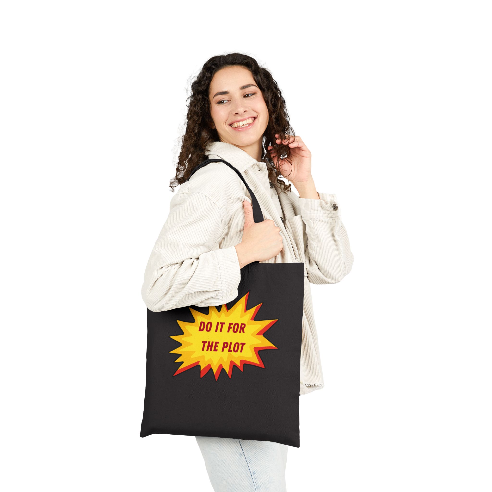 This Do It For the Plot cotton canvas tote makes encourages the owner to make bold, spontaneous and unusual choices and make life more interesting and adventurous.
