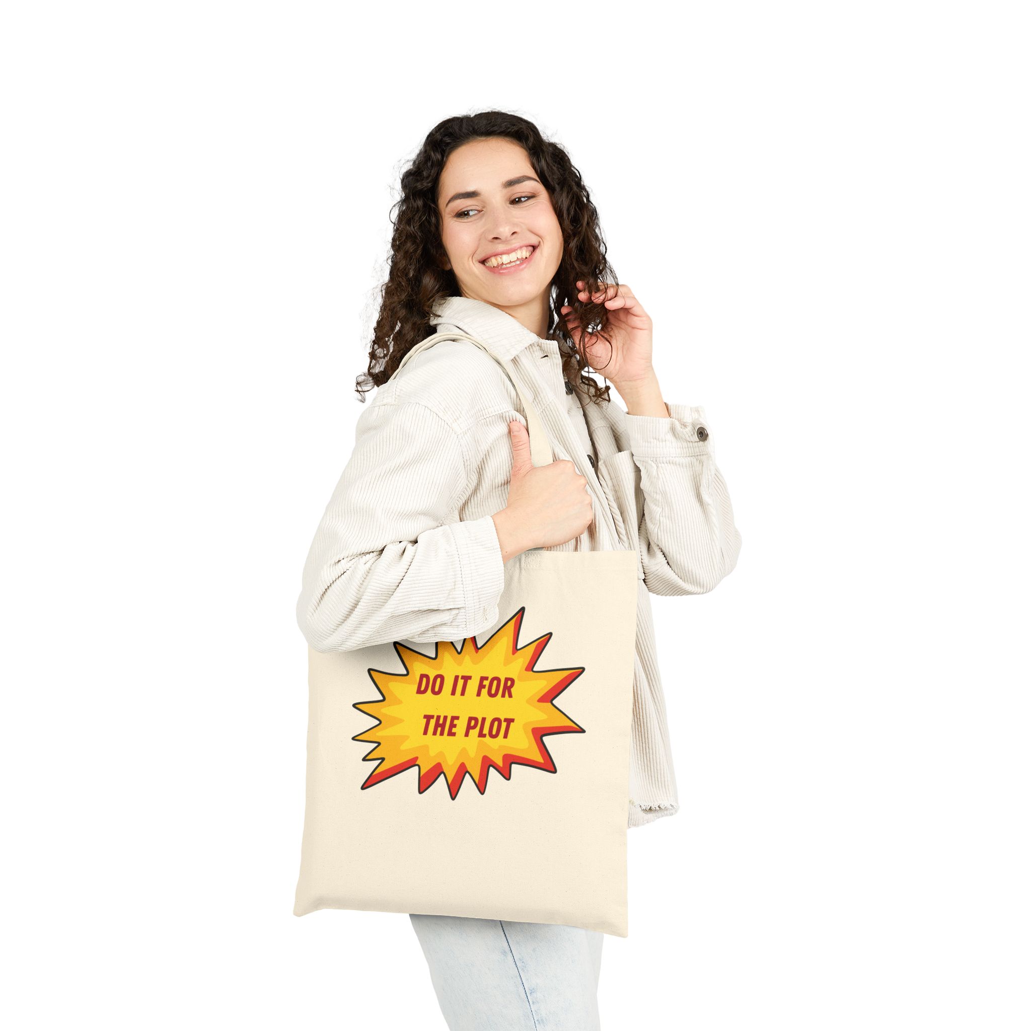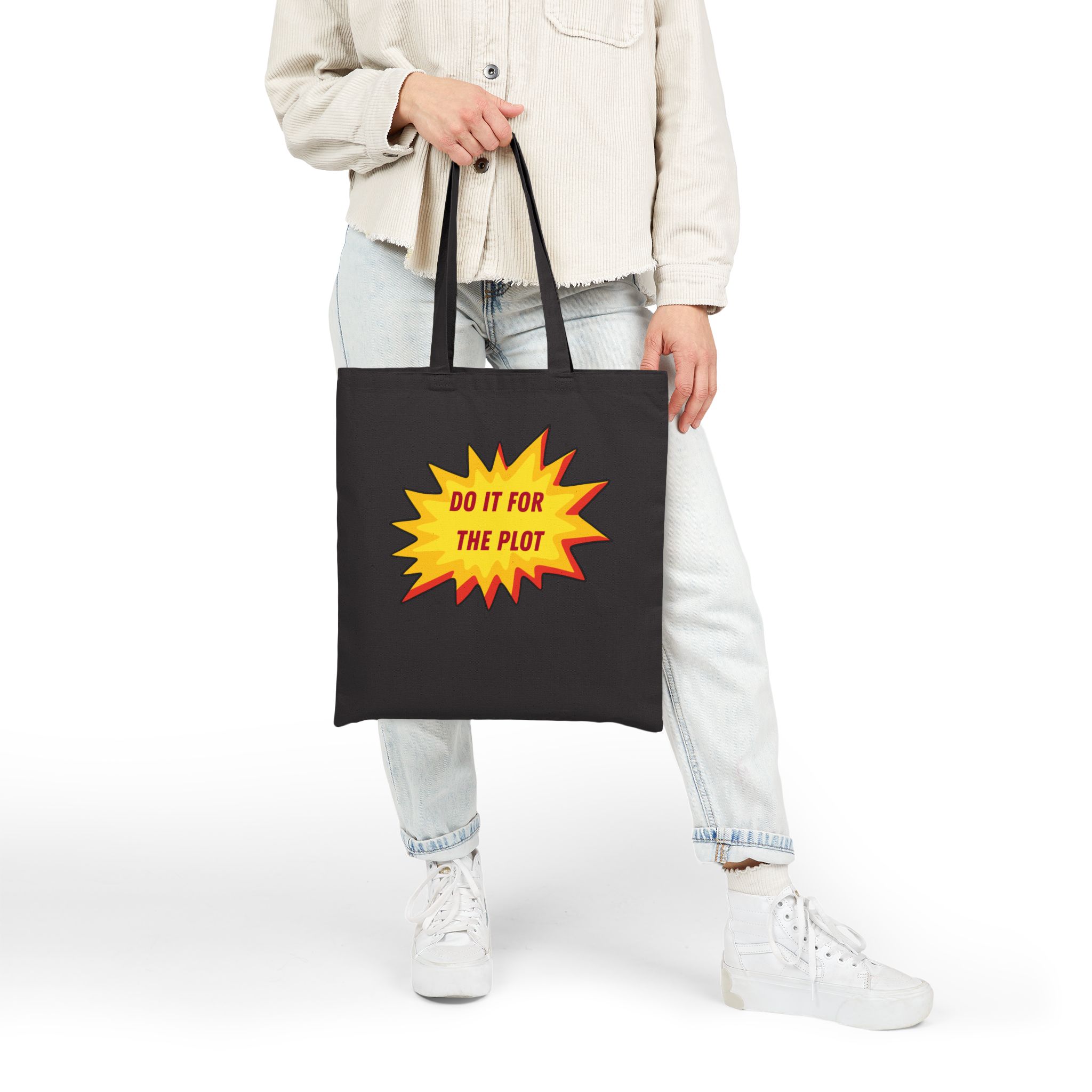 This Do It For the PLot cotton canvas tote makes encourages the owner to make bold, spontaneous and unusual choices and make life more interesting and adventurous.