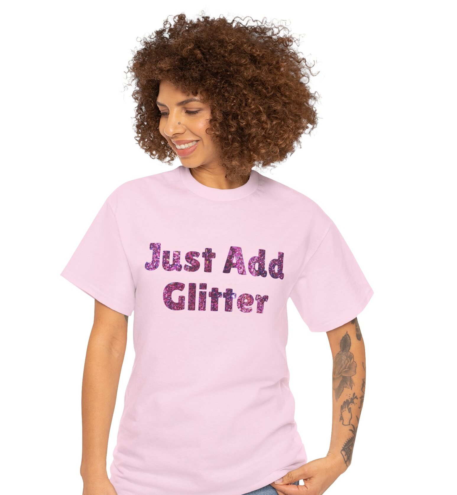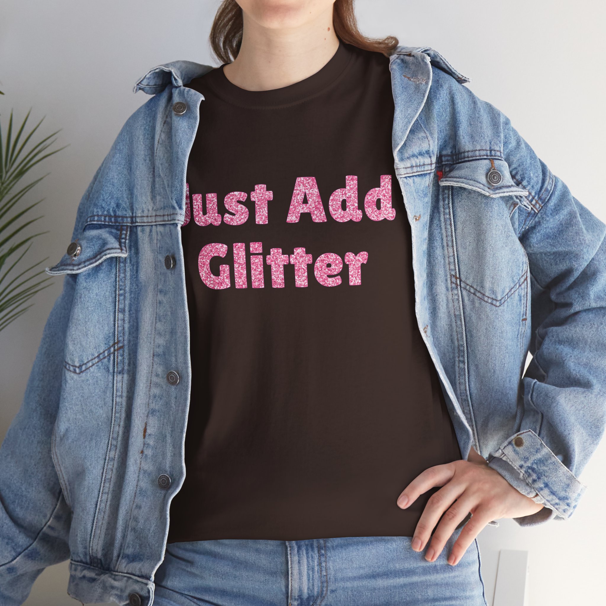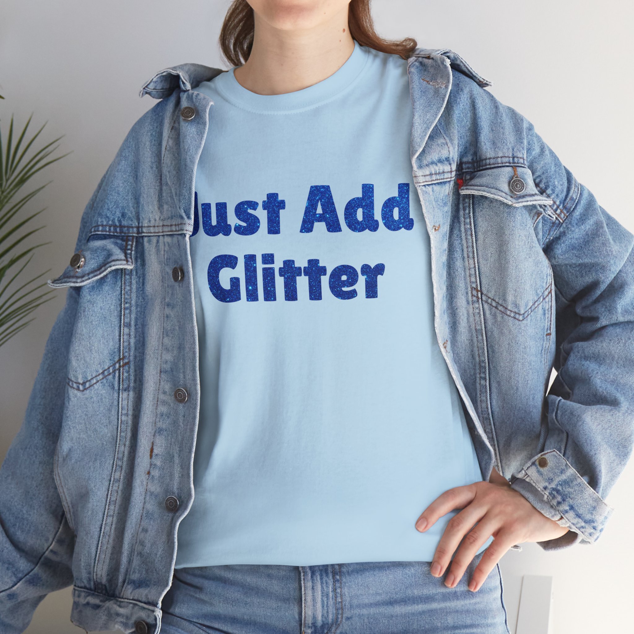 Just Add Glitter T-Shirt | Rainbow Glitter Text Tee – Glam Clothing – Party Girl – Sparkle Boy