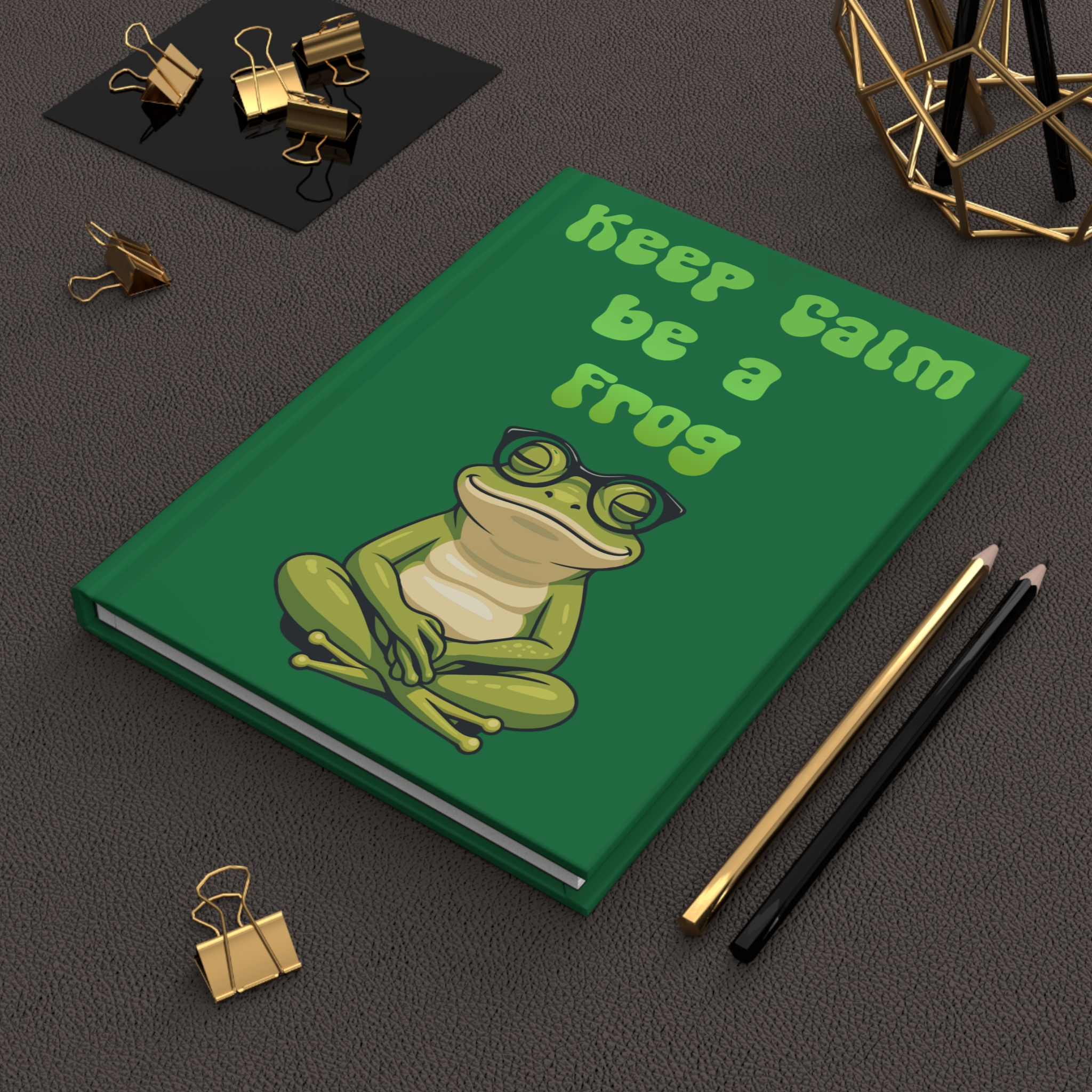 Keep Calm Be a Frog Hardcover Journal | Meditating Frog Lined Notebook | Kindness Peace Writing Journal
