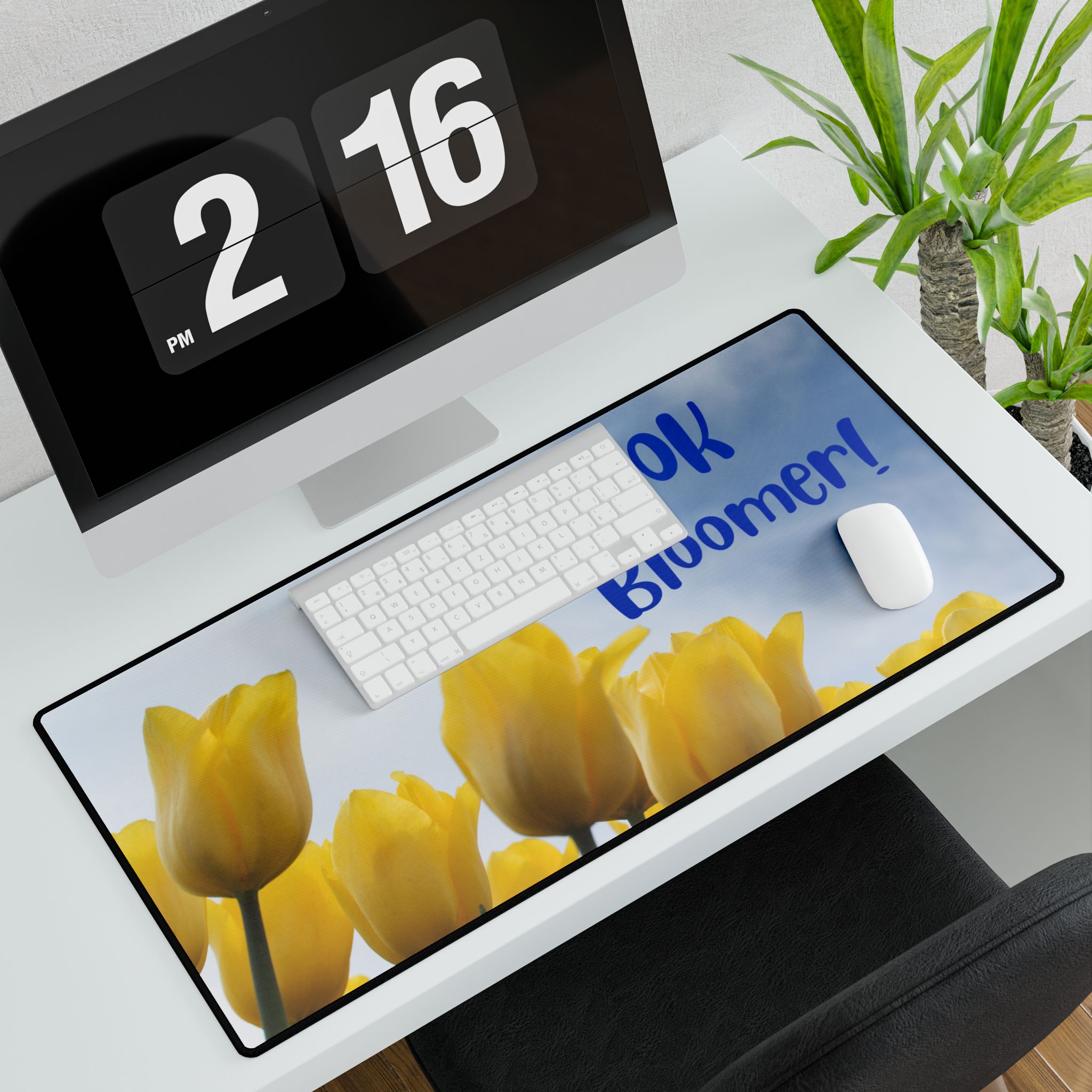 Make a statement with this funny OK Bloomer desk mat. A humourous comeback to the OK Boomer comment it will provide a little light relief and fun to your day. Apart from looking cool, this huge desk mat will keep your surfaces free from scratches and stains. Great for making spaces more organized with minimal effort. This mat has a smooth surface and a non-slip base, is durable and will last long without fraying or pilling. Optical and laser mice are supported. Measures 31.5″ x 15.5″ (80cm x 40cm)