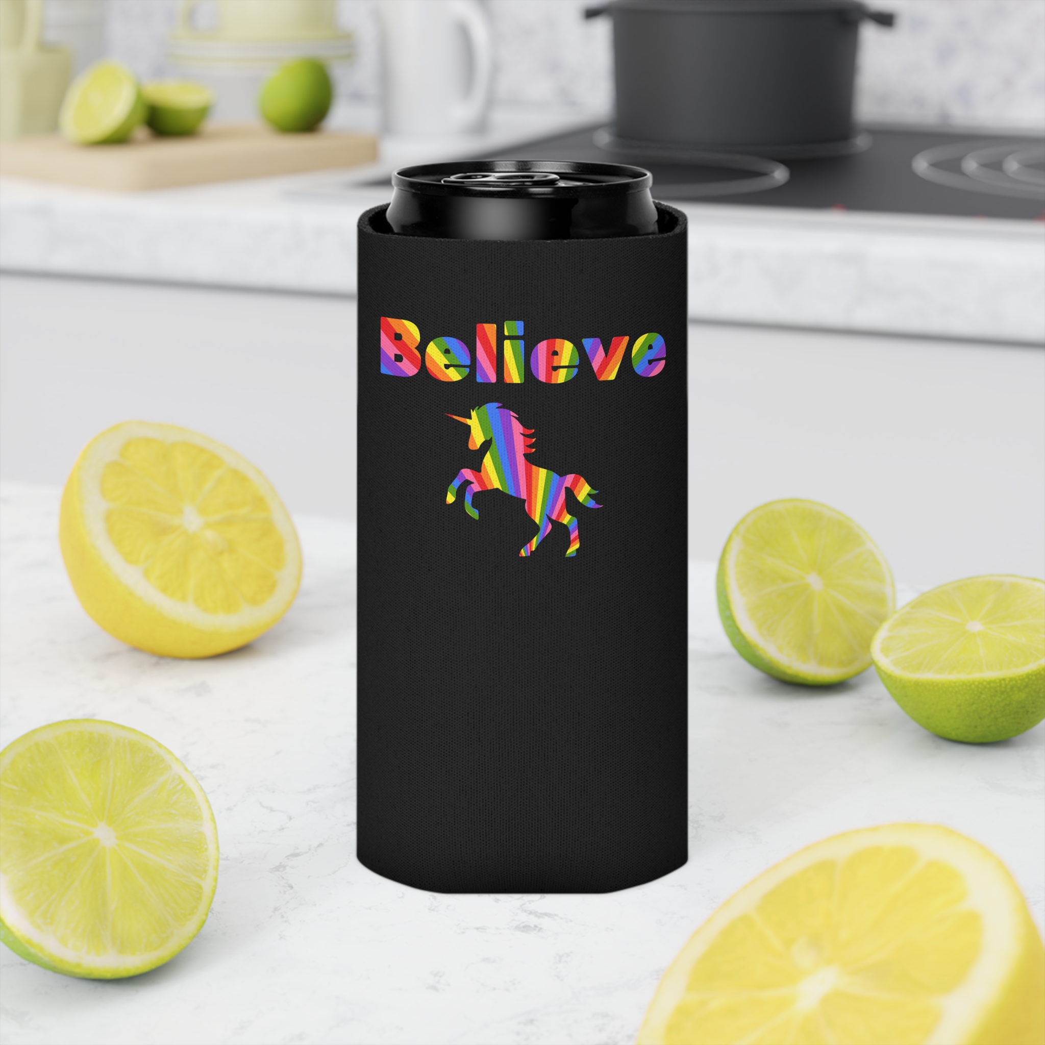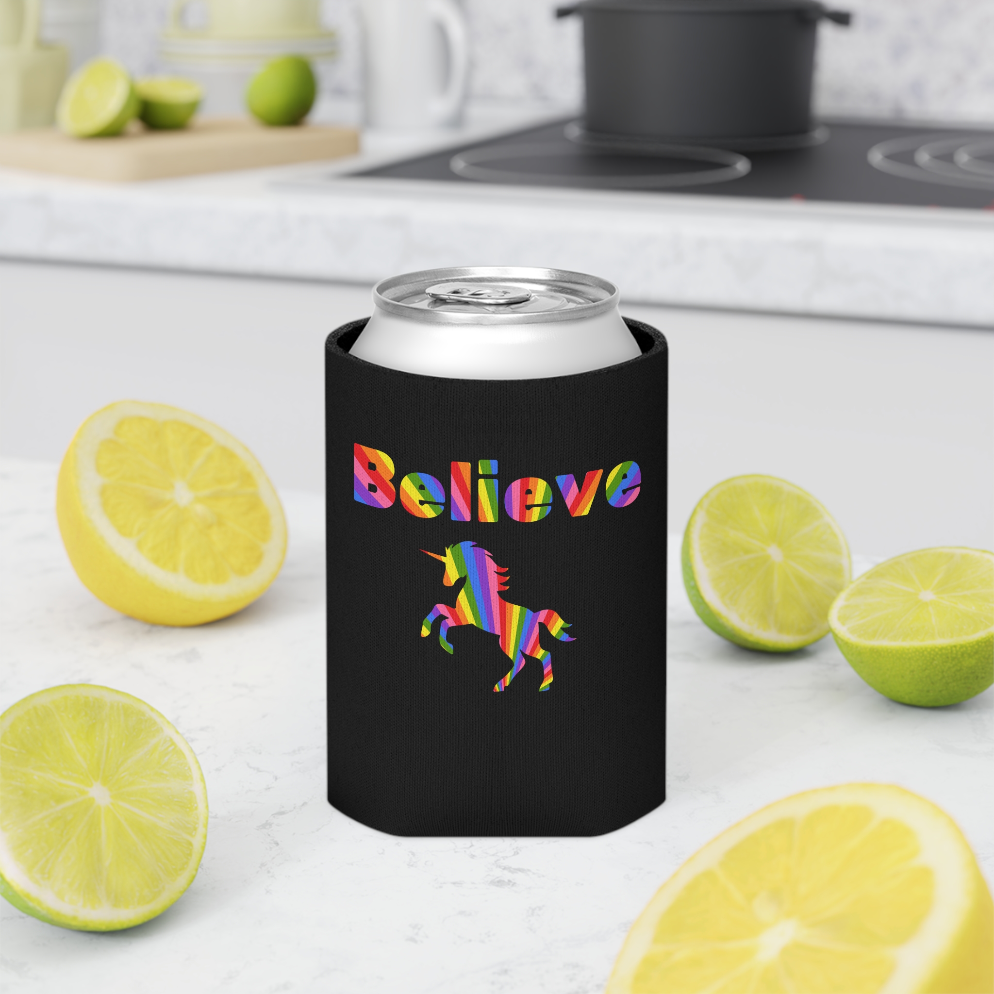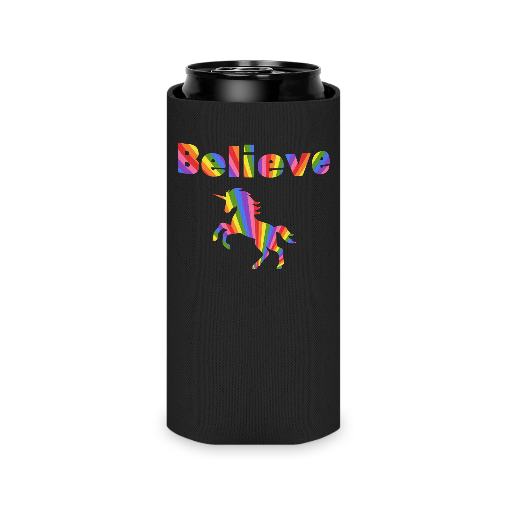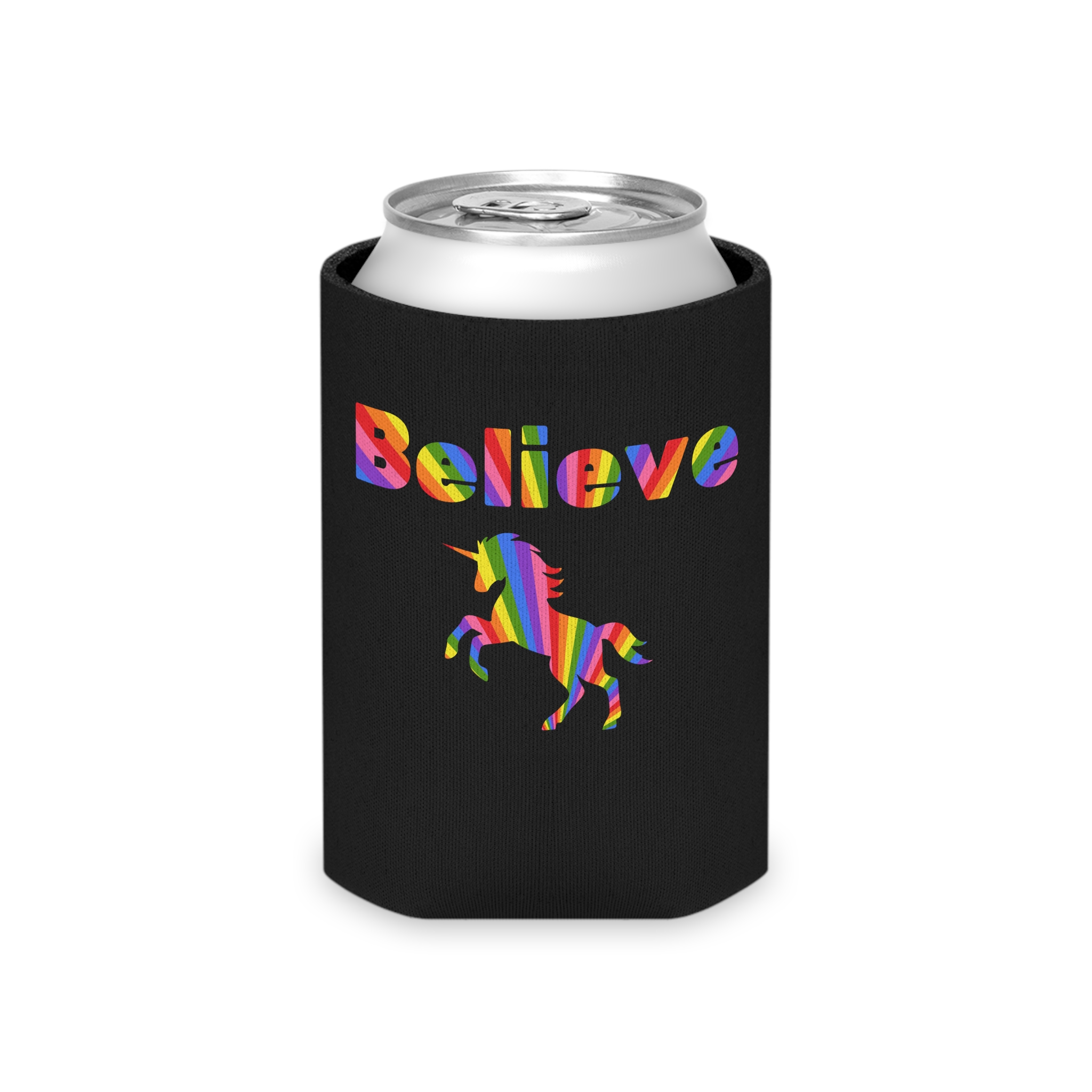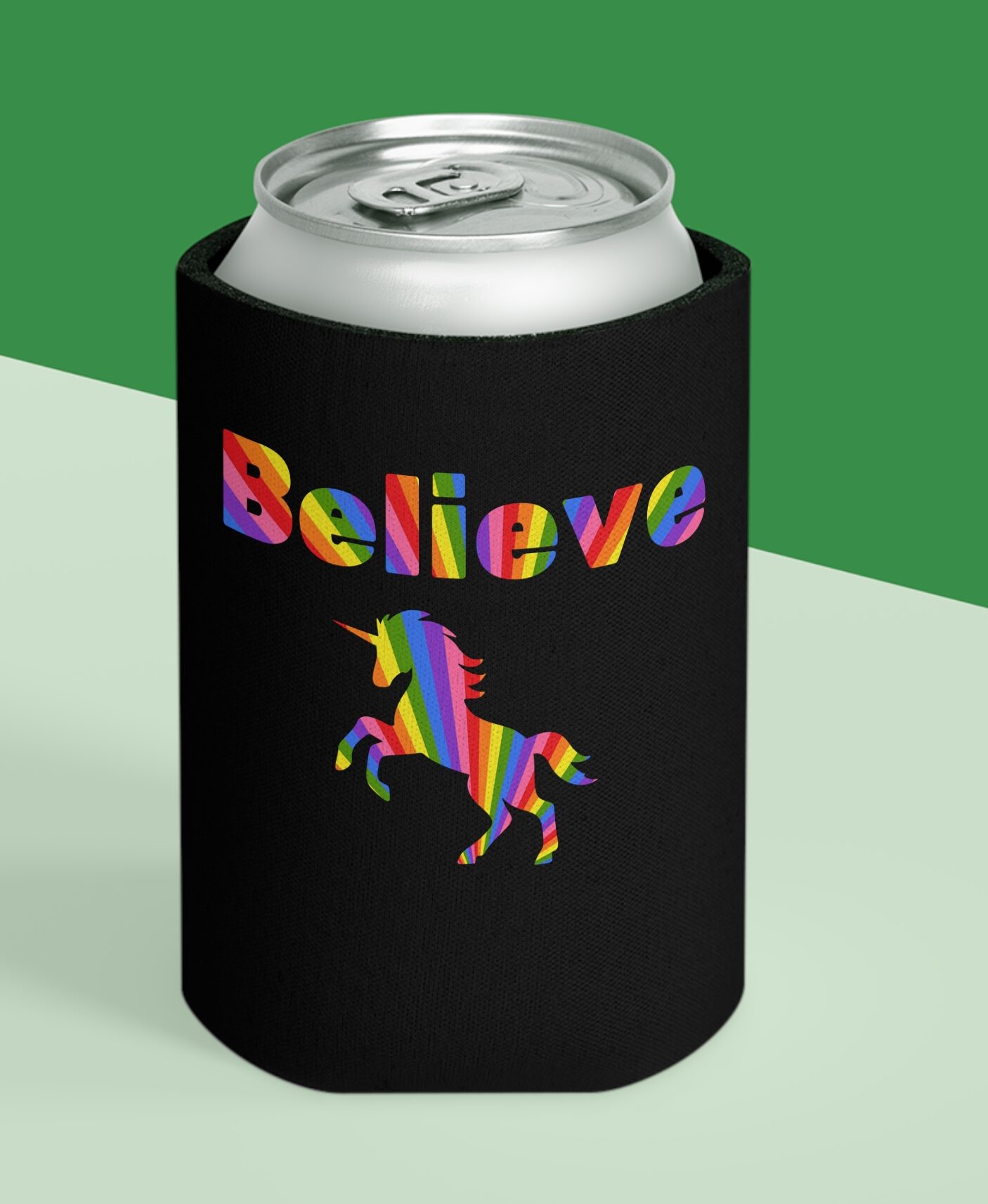 Rainbow Unicorn Drinks Koozie. Yes you can believe in anything you like…so long as you are kind! This can cooler will keep your favourite drinks cool at parties or camping whilst making a subtle statement about tolerance and respect 🙂