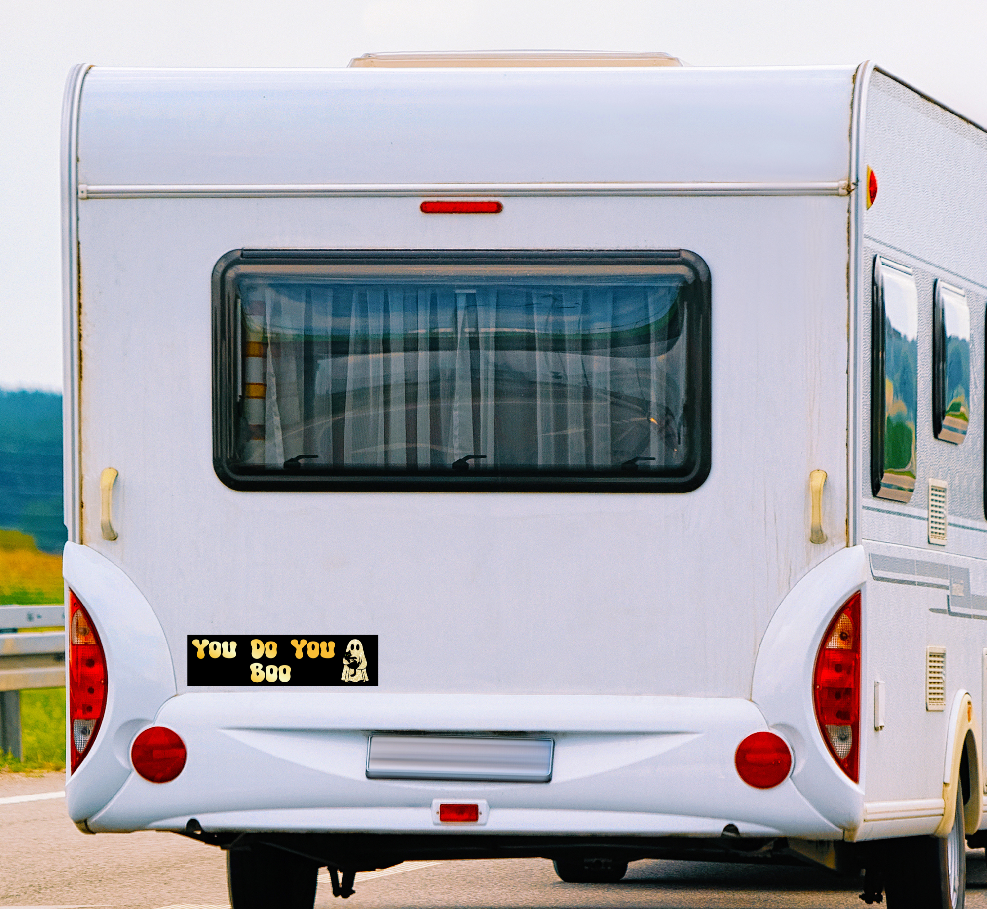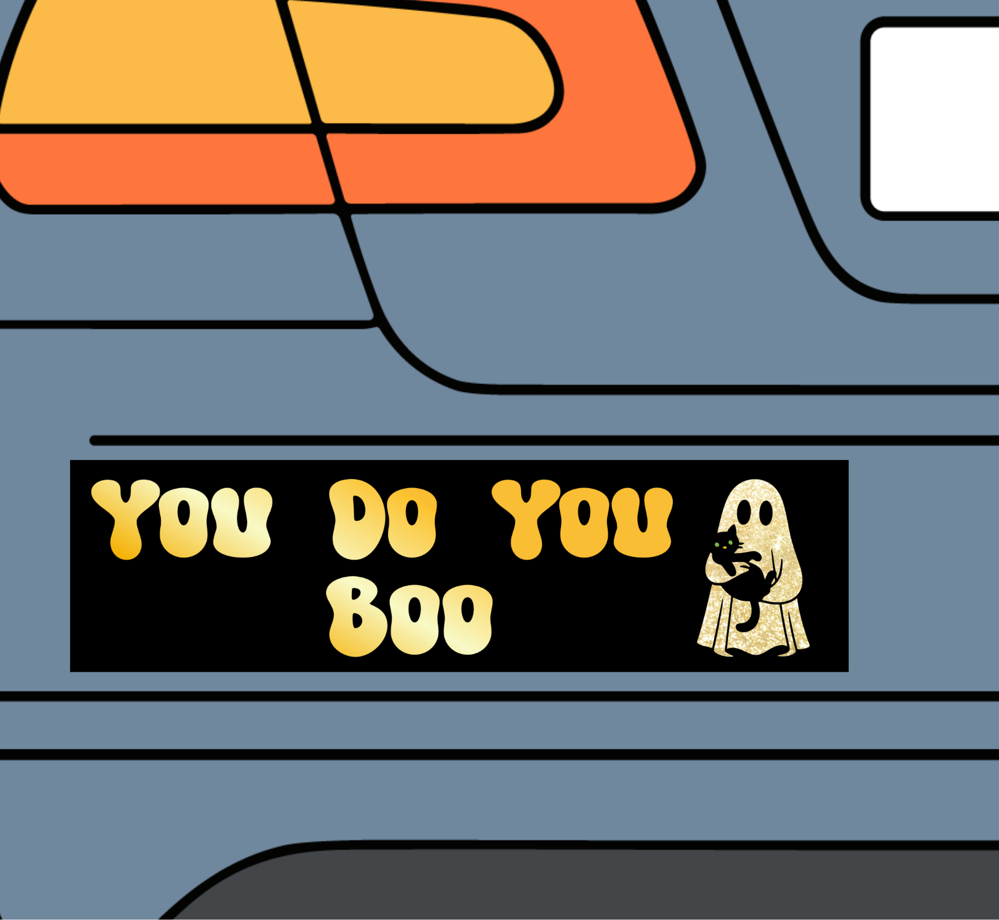 “You Do You Boo” bumper sticker, featuring an adorable gold ghost holding a sweet black cat. Designed to spread encouragement and self-expression, this sticker is a gentle reminder to stay true to yourself and confidently go your own way—no matter what anyone else thinks.