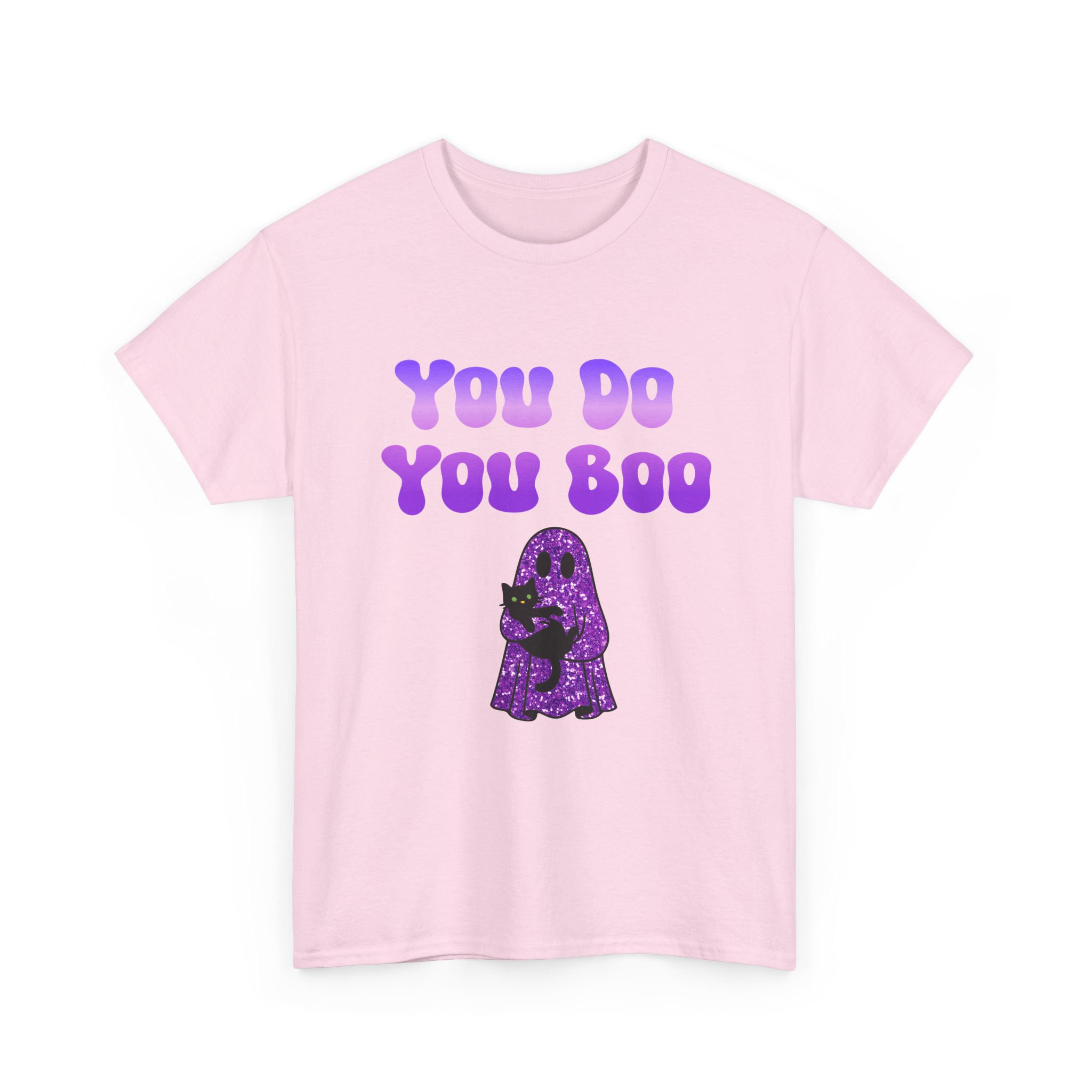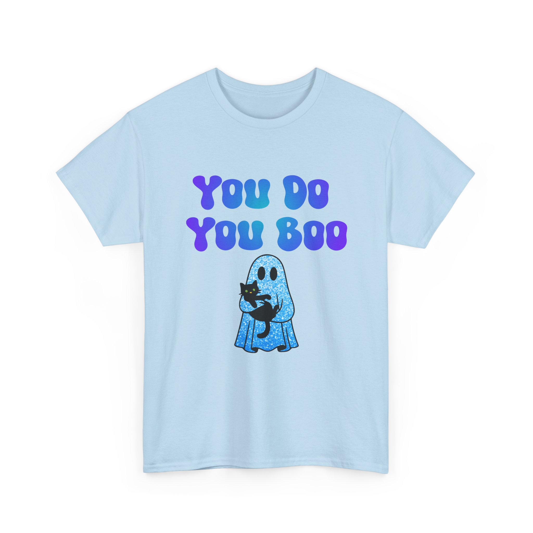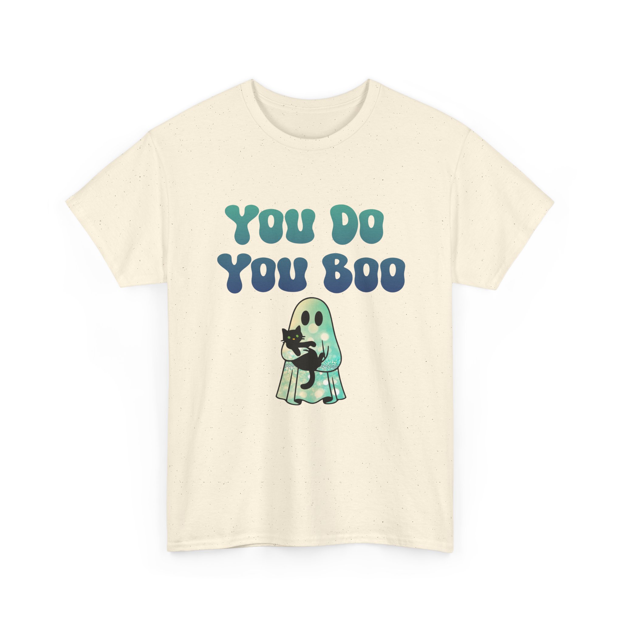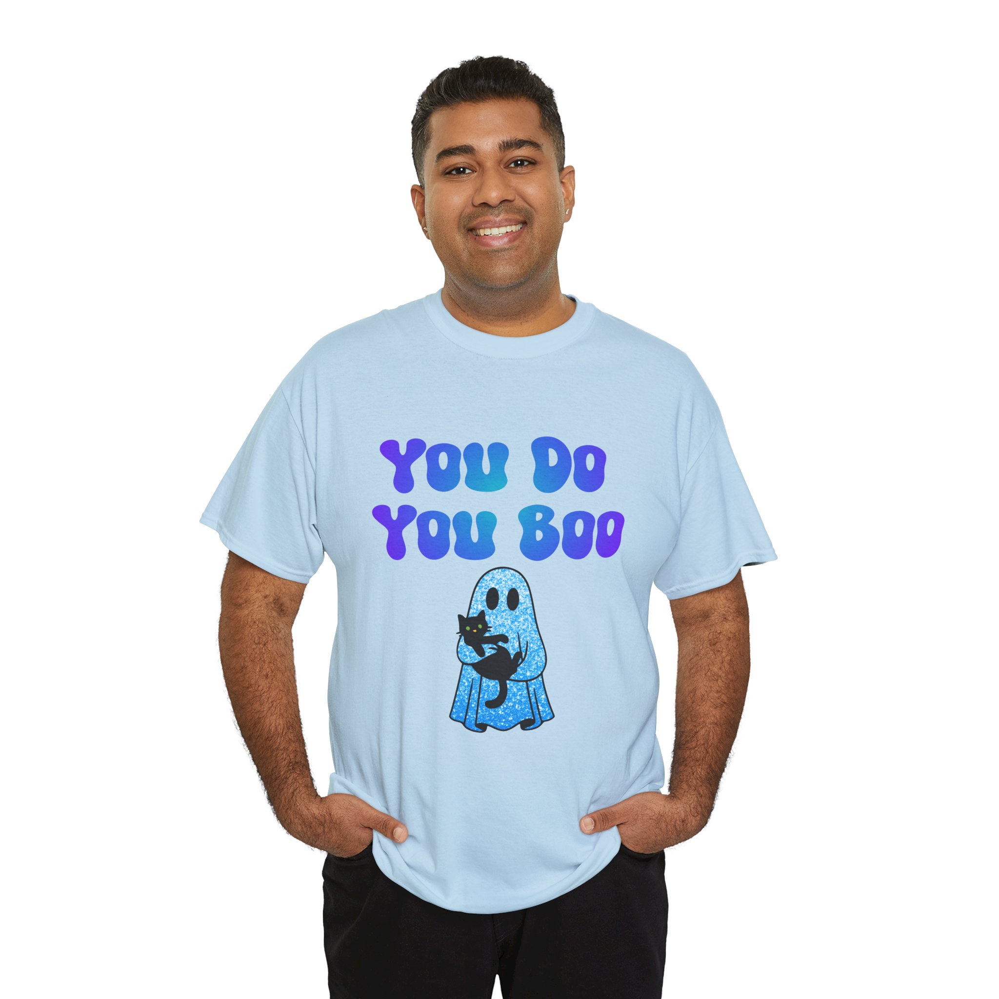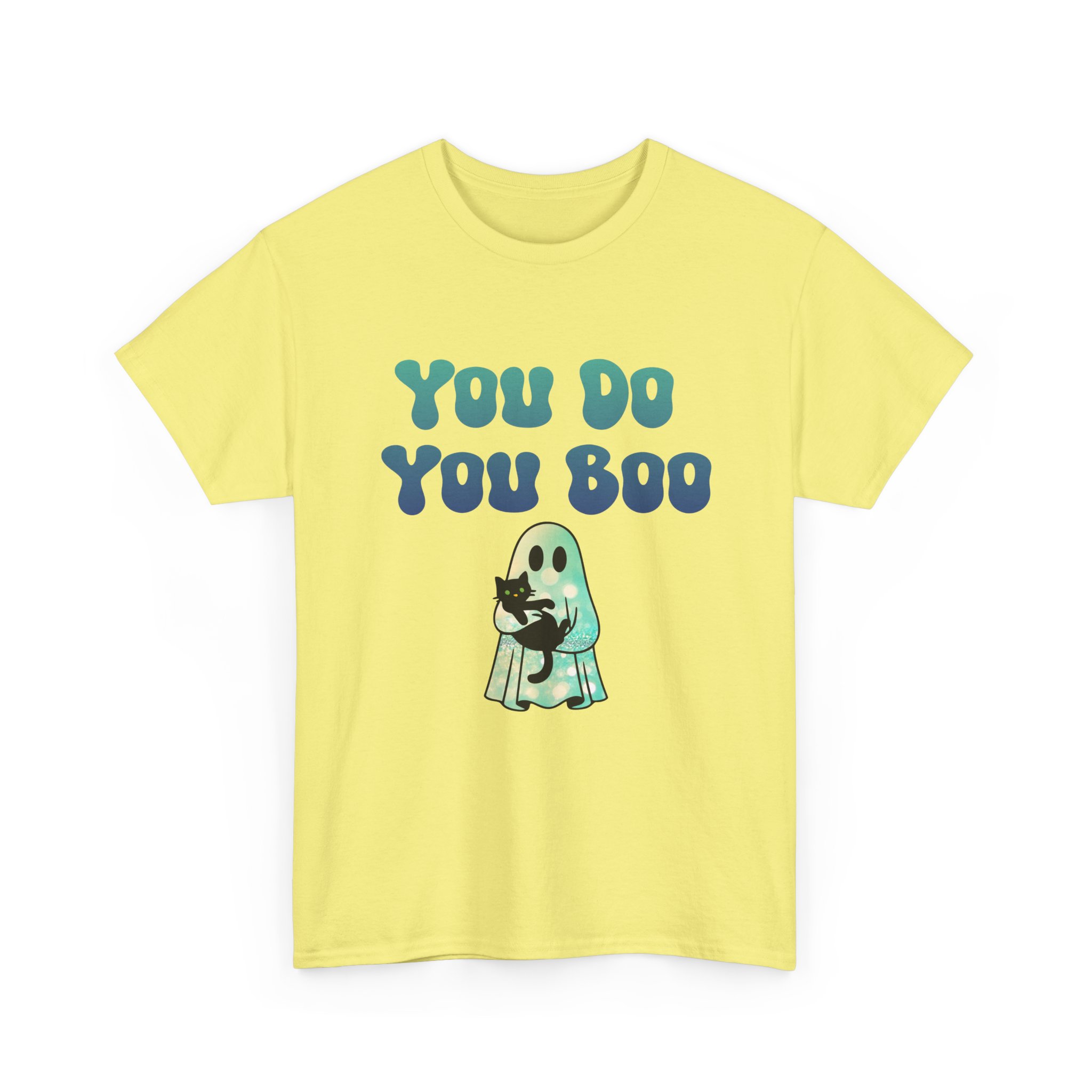 You Do You Boo funny unisex T Shirt with a playful, confident vibe. Bold bubble lettering reads “YOU DO YOU BOO” above a cute ghost holding a black cat—printed in bright colours that pop on a range of T Shirt colours. The shirt sits relaxed at the shoulders with a classic crew neckline and a comfortable midweight feel, so it moves with you throughout the day. It reads like a small, wearable pep talk: equal parts cute and sassy, meant to brighten your mood or someone else’s. Wear it with jeans, a denim jacket, or shorts; let the graphic do the talking while you go about your day with a little extra swagger.